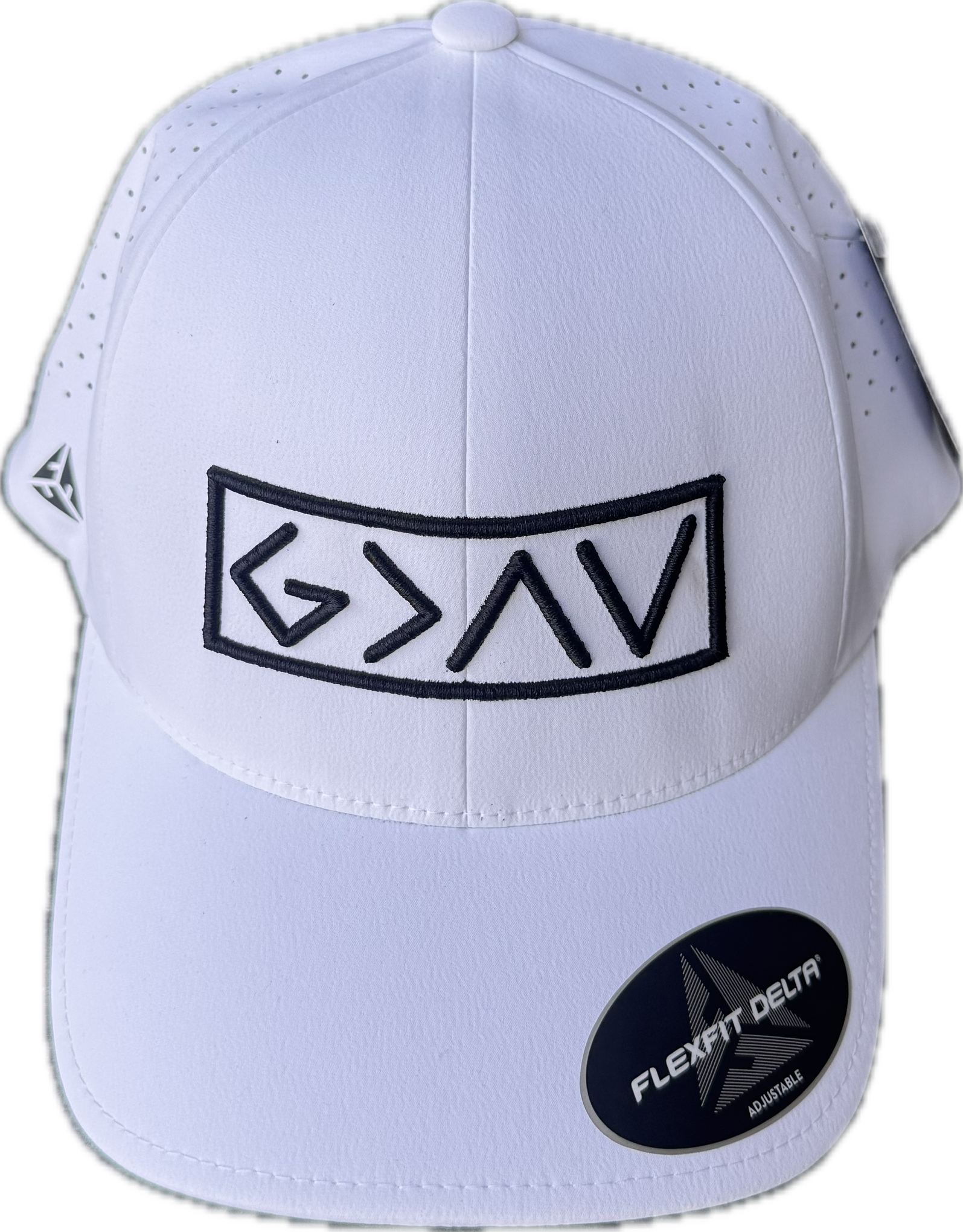 3D Embroidery on Flexfit Delta Performance hat with perforation holes in the back. Adjustable snapback fit